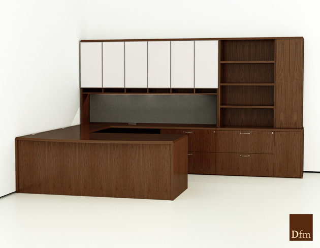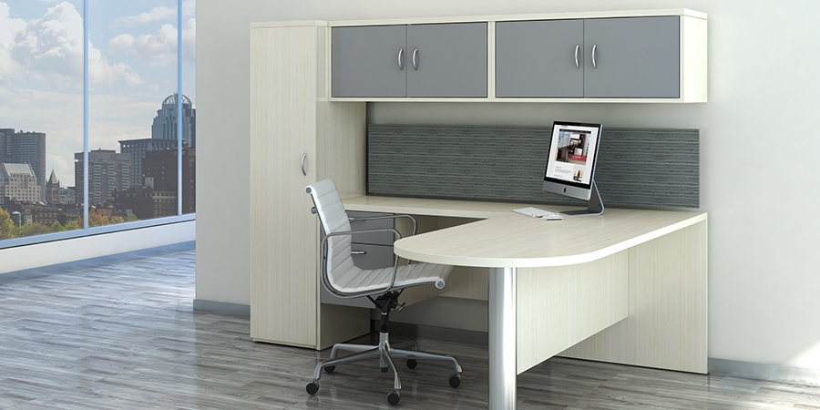 Introducing the Elements Plus Series: Simple, Contemporary, Affordable. Features include heavy-duty steel frame available in Silver and your choice of White or Modern Walnut laminate finishes on worksurface tops and hutch doors. Cabinets available in Modern Walnut only.
