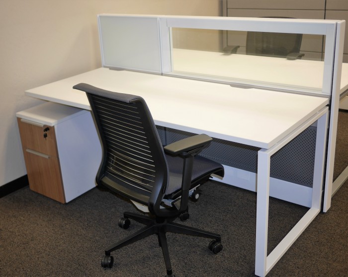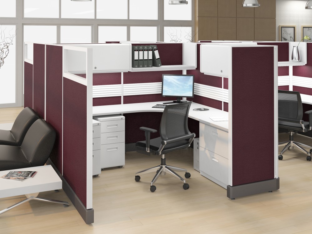 This workstation is one of our 100% refurbished products.Refurbishment is a cost-effective solution that restores furniture to like-new condition and allows you the luxury of fully customizing your workspace to fit your needs. Fabric color, trim color, cubicle height and laminate colors are some of the many things that can be altered to your existing cubicles or our preowned furniture options. This particular cubicle is a 6×6?, but can also be configured in a 6×8? and other various sizes.
