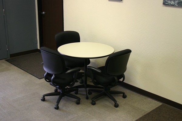 ROUND LAMINATE CONFERENCE TABLE WITH BLACK METAL BASE